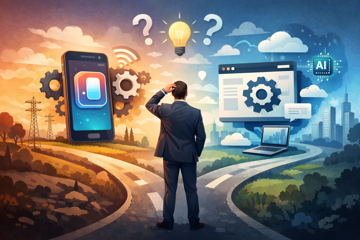 Application mobile ou web app ? Avant de répondre à cette question, il y en a une autre, plus fondamentale. Guide pratique pour les dirigeants de PME qui veulent faire le bon choix en 2026.